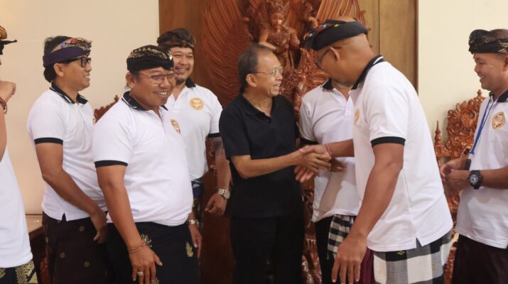 DENPASAR – Gubernur Bali Wayan Koster menerima audiensi komunitas pengemudi taksi online yang tergabung dalam Taruna Nusa Dua Citraloka (TNDC) di Jayasabha, Denpasar, pada