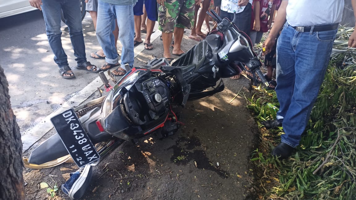 Yang Dibonceng Tak Sadarkan Diri BULELENG – Out of control (OC), pengendara sepeda motor Jupiter MX warna hitam DK 3438 UAX menabrak pohon asam