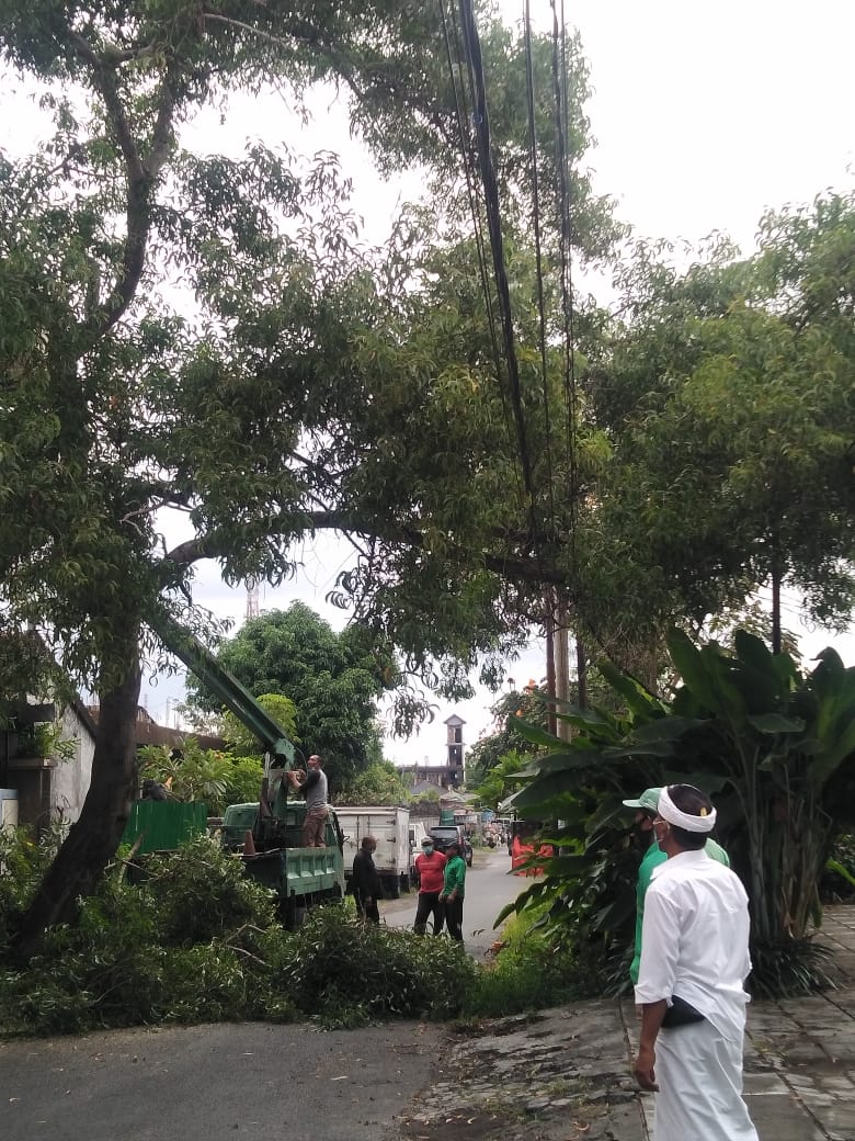 DENPASAR – Tim Respon Cepat dan Juru Pemantau Lingkungan (Jumali) Desa Sumerta Kelod lakukan Perompesan pohon di Jalan Drupadi II Rabu (6/10/2021). Perbekel Desa