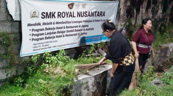 Gotong Royong Bersama Masyarakat Desa Adat Batuyang, Istri Gubernur Bali Antusias Nyapu Jalan