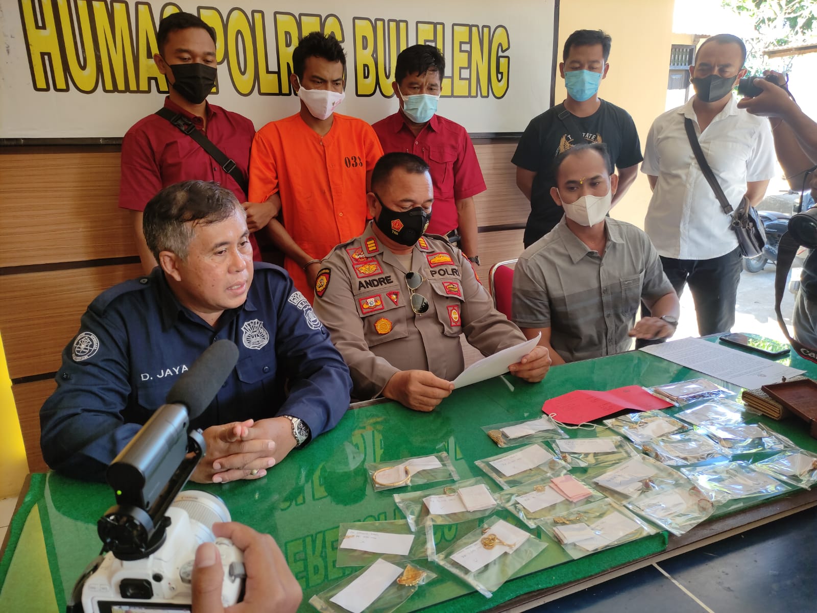 BULELENG – Residivis yang menyikat emas seorang pedagang senilai Rp 89.662.000 ternyata baru keluar 34 hari lalu dari penjara karena mencuri sertifikat. Tersangka bernama