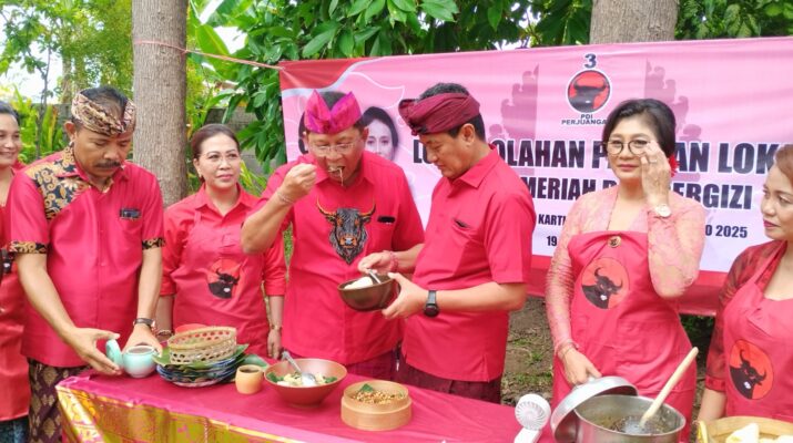 BULELENG – Suasana semarak tampak sejak pagi di Buleleng, Sabtu (19/4/2025), saat para ibu kader PDIP tampil anggun dengan kebaya merah, sibuk meracik rempah-rempah