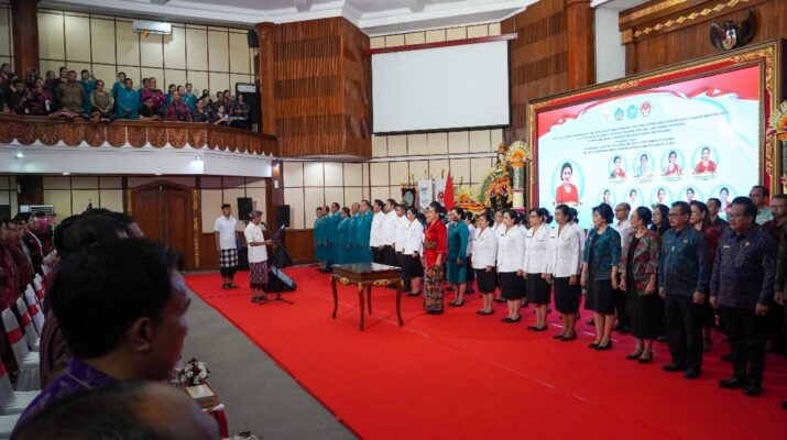 DENPASAR – Gubernur Bali Wayan Koster mengukuhkan Ketua TP PKK dan Ketua Tim Pembina Posyandu, Ny Putri Suastini Koster dan melantik Pengurus TP PKK